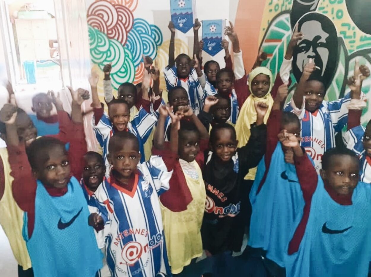 Les enfants de l’orphelinat « Daaray Serigne Saliou Mbacke » posent fièrement avec les couleurs de l’US Montagnarde.