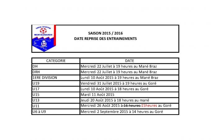 Date reprise des Entraînements seniors/jeunes, tableau de préparation…