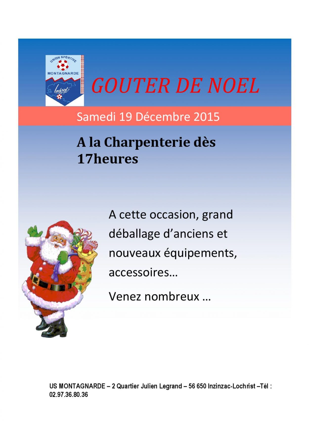 L’US Montagnarde organise un goûter de Noël le samedi 19 Décembre à partir de 17 heures à la Charpenterie.